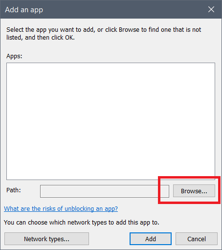 9,Click on the [Add] button to add the path of the application.